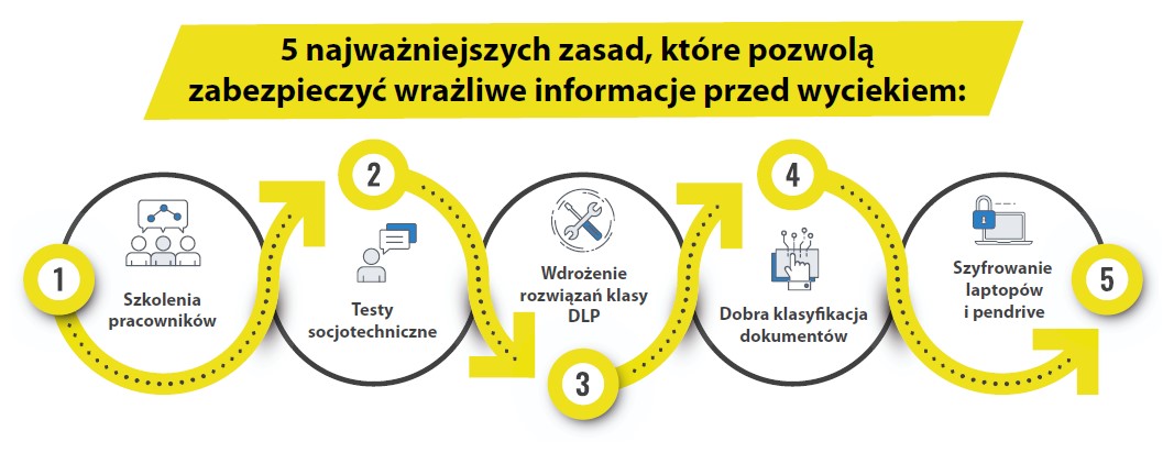 Zacząłbym od kilku rzeczy. Szkolenia pracowników – ponieważ zwiększenie świadomości to podstawowa zasada bezpieczeństwa. Następnie wykonania audytu, aby wiedzieć jakie dane są gromadzone, gdzie i kto ma do nich dostęp oraz określenia zasad, w jaki sposób z danymi postępować. Kolejnym krokiem będzie wdrożenie rozwiązania DLP w zakresie monitorowania aktywności na plikach. Na początku drogi przy zabezpieczeniu danych, chciałbym wiedzieć jakie pliki opuszczają organizację i czy w tych plikach znajdują się dane, które powinny być chronione. Dopiero mając tę wiedzę, można wdrażać odpowiednie polityki bezpieczeństwa pozwalające zablokować wyciek danych na zewnątrz organizacji.