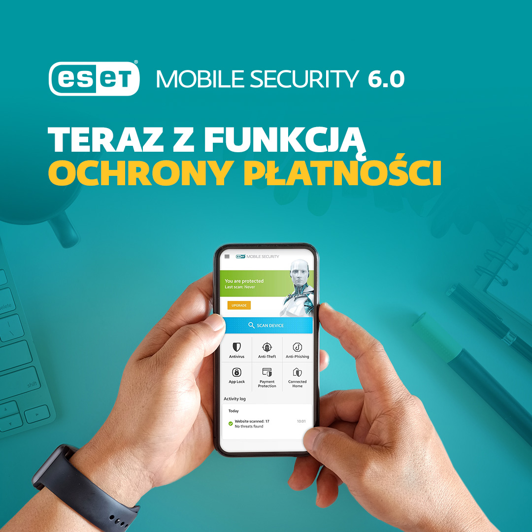 Firma ESET, światowy lider w zakresie cyberbezpieczeństwa, wprowadziła na rynek nową wersję swojego oprogramowania antywirusowego dla urządzeń mobilnych z systemem Android. ESET Mobile Security 6.0 chroni użytkowników smartfonów i tabletów m.in. przed wszystkimi rodzajami złośliwego oprogramowania oraz stronami internetowymi wyłudzającymi dane (phishingiem), a dodatkowo został wzbogacony o kolejną funkcję – ochronę płatności.