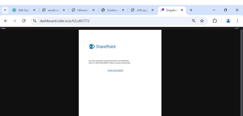 Gdy ofiara kliknęła w link, została przekierowana na stronę z udostępnionym plikiem, sprawiającym wrażenie bezpiecznego dokumentu. W rzeczywistości link prowadził jednak do strony phishingowej, służącej do kradzieży danych uwierzytelniających.