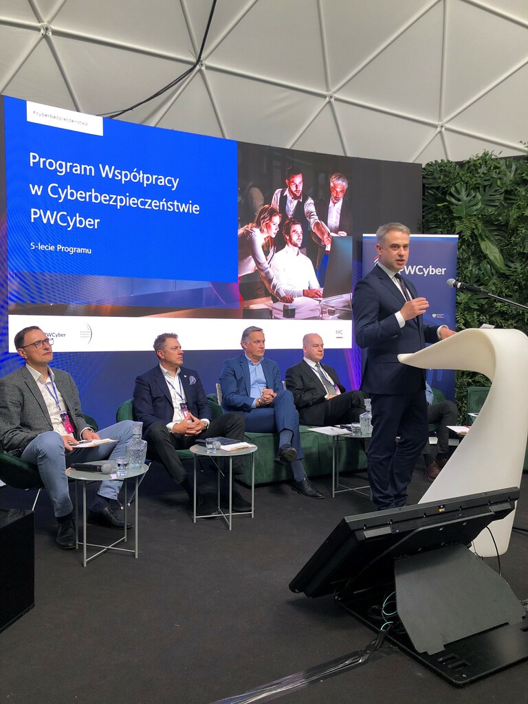 Podczas Europejskiego Kongresu Gospodarczego świętowaliśmy również 5-lecie Programu Współpracy w Cyberbezpieczeństwie, w którym DAGMA Bezpieczeństwo IT aktywnie uczestniczy. PWCyber to przedsięwzięcie niekomercyjne o charakterze partnerstwa publiczno-prywatnego, realizowane na rzecz Krajowego Systemu Cyberbezpieczeństwa. Grupuje kilkadziesiąt firm operujących na rynku cyfrowym, których z każdym rokiem przybywa coraz więcej. Wicepremier i Minister Cyfryzacji, Krzysztof Gawkowski otwierając wydarzenie, zwracał uwagę, że Polska jest na cybernetycznej wojnie.