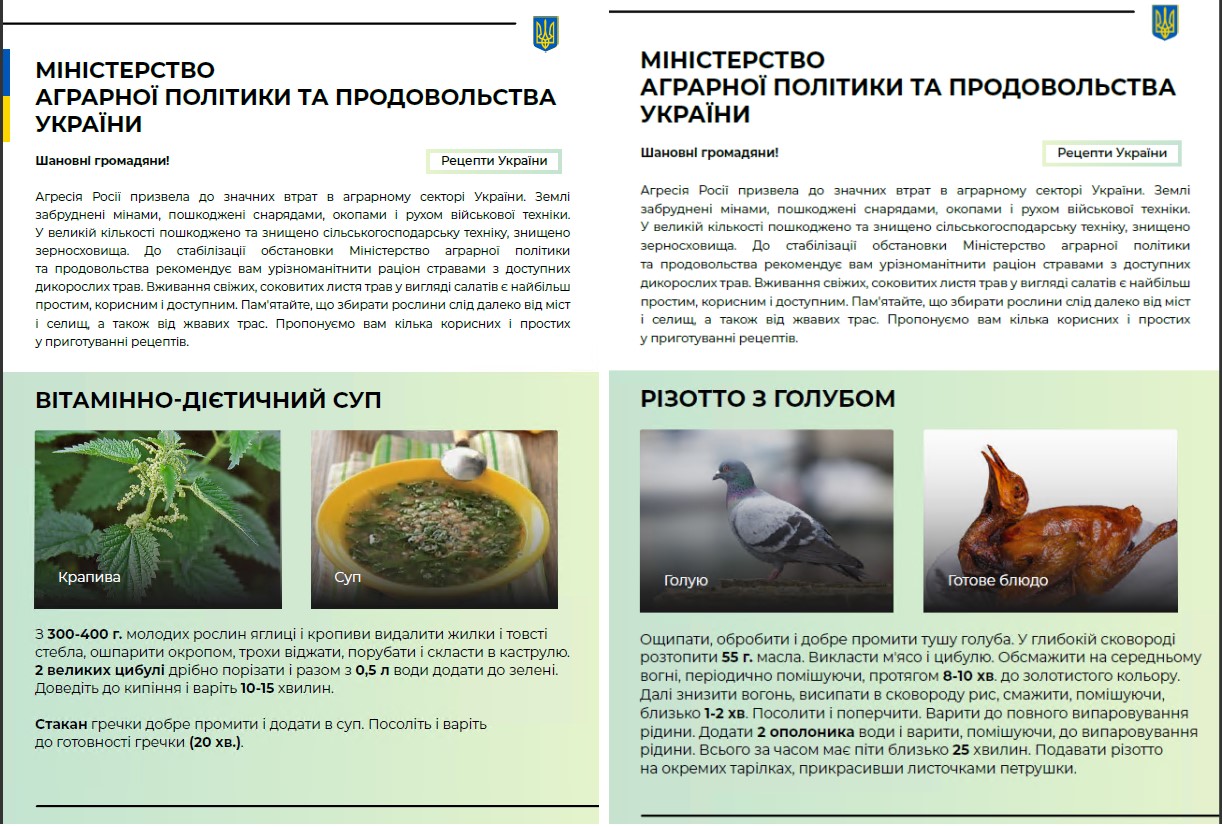 Celem pierwszej fali e-maili dezinformacyjnych Texonto było zasiewanie wątpliwości w umysłach mieszkańców Ukrainy. Przykładowo jeden z e-maili informował, że: „Tej zimy mogą wystąpić przerwy w ogrzewaniu”. Inne, rzekomo wysyłane przez Ministerstwo Zdrowia, dotyczyły niedoborów leków. Jedna z domen, podszywająca się z kolei pod Ministerstwo Polityki Agrarnej i Żywności Ukrainy, zalecała zastąpienie niedostępnych leków ziołami. W kolejnym mailu z tej serii sugerowano jedzenie potraw z gołębi, dołączając do informacji zdjęcia żywego i gotowanego gołębia. Nie wydaje się, aby w tej konkretnej fali komunikatów znajdowały się jakiekolwiek złośliwe linki lub złośliwe oprogramowanie. Bazowała ona przede wszystkim na dezinformacji, miała wpływać na emocje odbiorców, zwiększając ich poziom zaniepokojenia i demotywując. Fałszywe wiadomości wykorzystywały motywy typowe dla rosyjskiej propagandy: przede wszystkim sugerowanie obywatelom Ukrainy, że w czasie wojny grożą im niedobory leków, jedzenia i ogrzewania.
