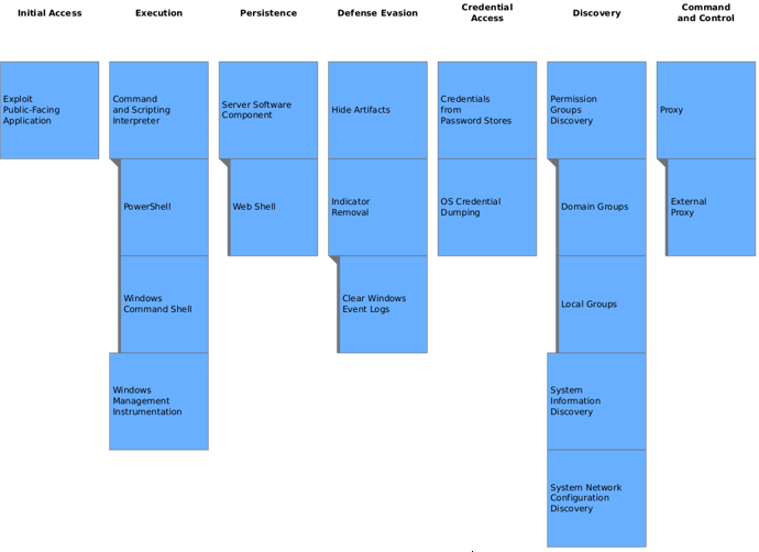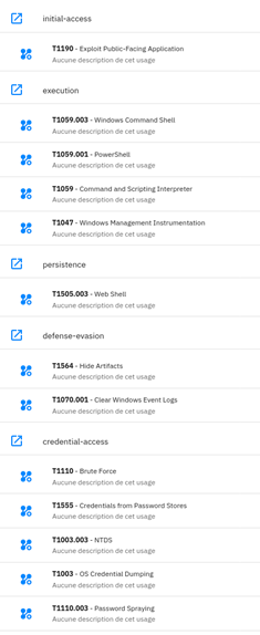 Analizując różne raporty, zespół Gatewatcher stworzył matrycę odpowiadającą TTPS (technice, taktyce i procedurom) atakującego: